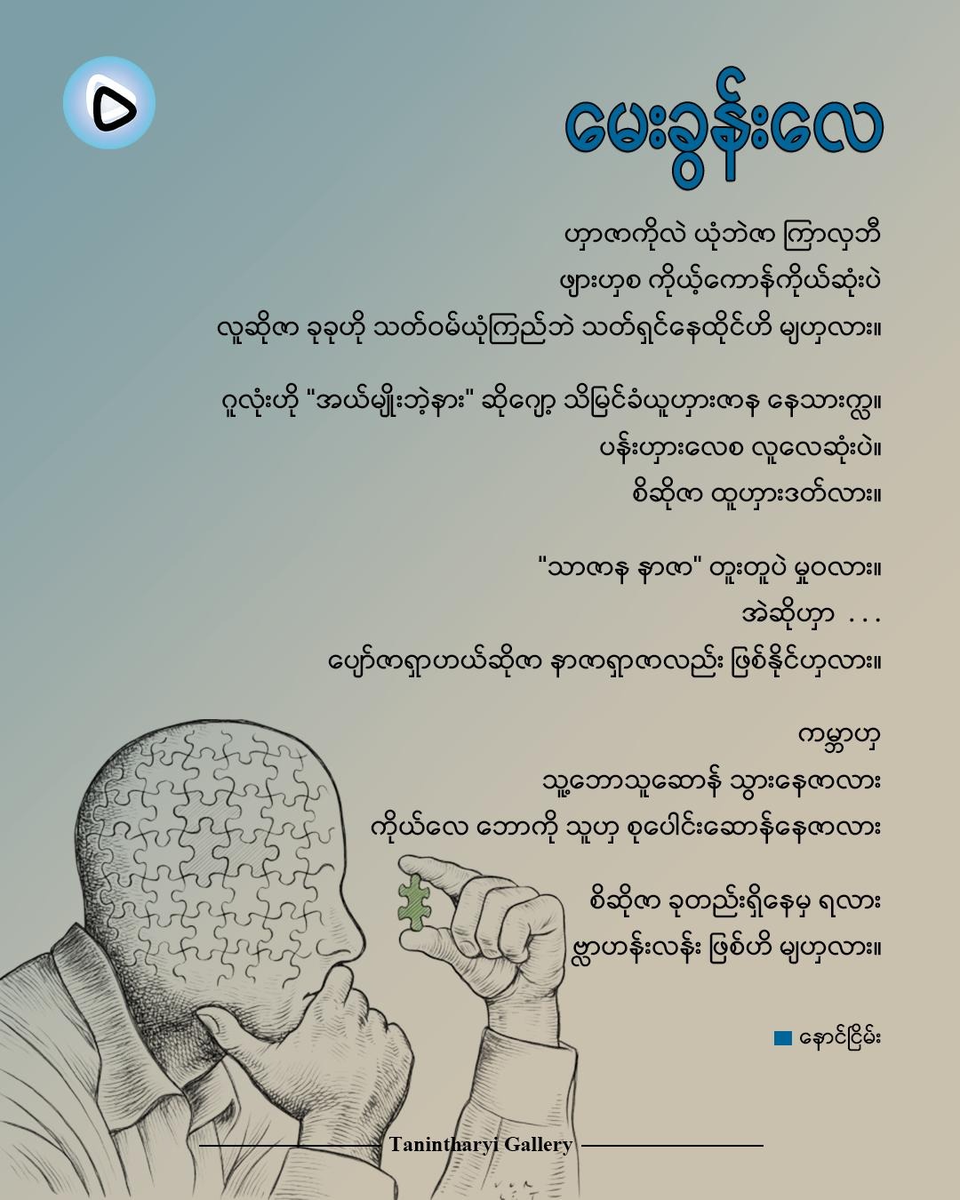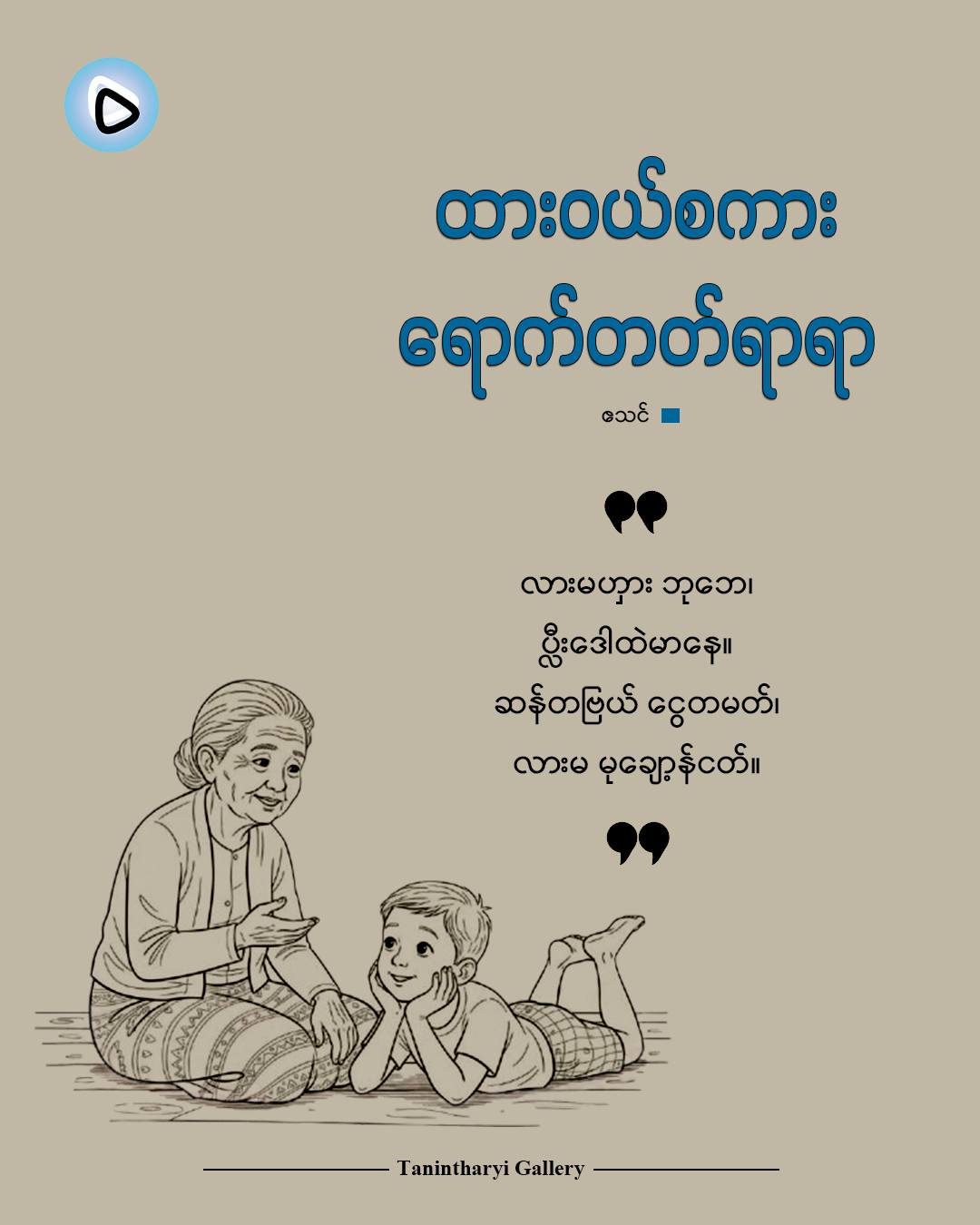 ယဉ်ကျေးမှု ( Culture ) ခေတ်သစ် ထန်းရယ်ခါး November 21, 2025 ထားဝယ်ကဗျာ ဆိုစရာ November 20, 2025 ပြန်၊ ပျံ – ပ္လန် ( ထားဝယ်ပေါ့ကတ်စ် ) November 15, 2025 ထားဝယ်စကား ရောက်တတ်ရာရာ November 14, 2025 ထားဝယ် ကဗျာ ရွတ်ဆိုစရာ November 11, 2025 တနင်္သာရီတိုင်းဒေသကြီး နောက်ခံသမိုင်းမှတ်စုနှင့် ထားဝယ်မှတ်စု| Podcast November 8, 2025 မေးခွန်းလေ November 6, 2025 လူလယ်ကြစ်ခိုး ကသေတိုး November 5, 2025 ၁၁၃ ကြိမ်မြောက် ထားဝယ်တန်ဆောင်တိုင် November 3, 2025 1 2 3 4 … 8 ပ္လေါက် – ပလုတ်ဗဒုံမင်းရဲ့ ရွှေဂူဘုရား ရှာပုံတော်သီတင်းကျွတ် အလွမ်းမှန်းထောန်း ( ထမင်းထောင်း)ရှေးမြန်မာကျောက်စာနဲ့ ထားဝယ်အသံမြိတ်မြို့ ပုန်းညက်တောင်ပေါ်က သေးမားသိမ်တောင်ပွားဘုန်းကြီးကျောင်းထဲက သာသနိက အဆောက်အအုံများတနင်္သာရီမြို့ရှိ ရှေးဟောင်းမြို့ရိုးကြီးများထားဝယ်မြို့မှ နှစ်တစ်ရာကျော်သက်တမ်းရှိ မှန်ပန်းချီရေးပြတင်းပေါက်များထားဝယ်မြို့က ထူးခြားတဲ့ ခရစ်ယာန်ဘုရားရှိခိုးကျောင်းတော် https://youtu.be/X0ZKtb8F1qk?si=gf0h_oZD0Qio73Vmhttps://youtu.be/pC8xnJoNB30?si=OBklP2UiXm1m7J4ghttps://youtu.be/ICmnvnaSUEQ?si=HK9H1cfcOETv10RF ပိုမိုကြည့်ရှုရန်