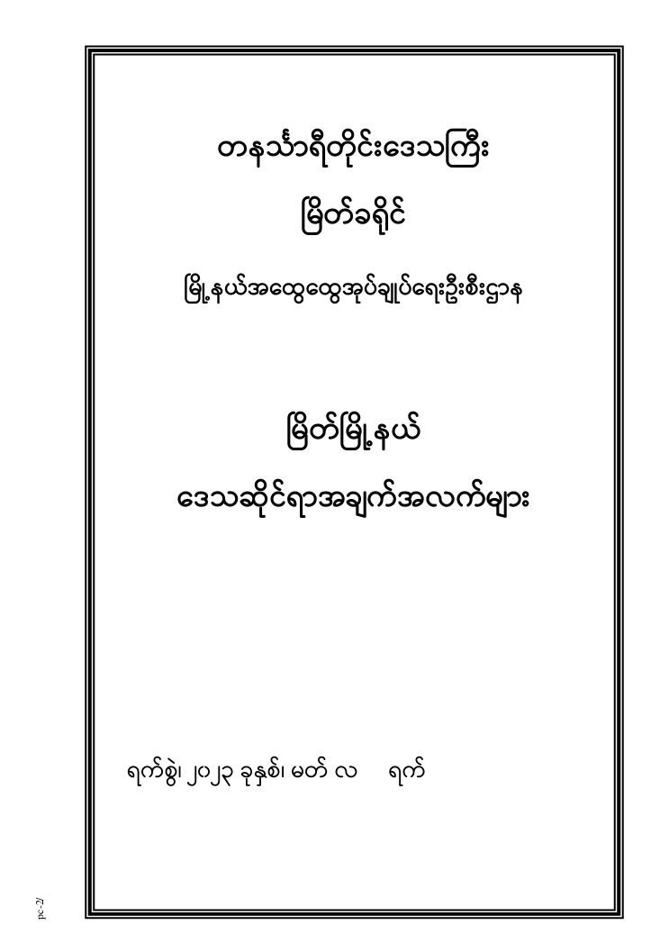 မြိတ်မြို့နယ် ဒေသဆိုင်ရာ အချက်အလက်များ – ၂၀၁၃