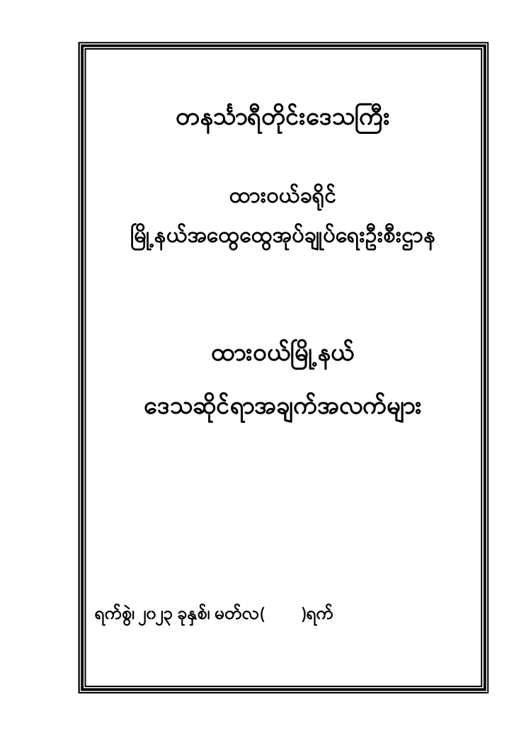 ထားဝယ်မြို့နယ် ဒေသဆိုင်ရာ အချက်အလက်များ – ၂၀၁၃