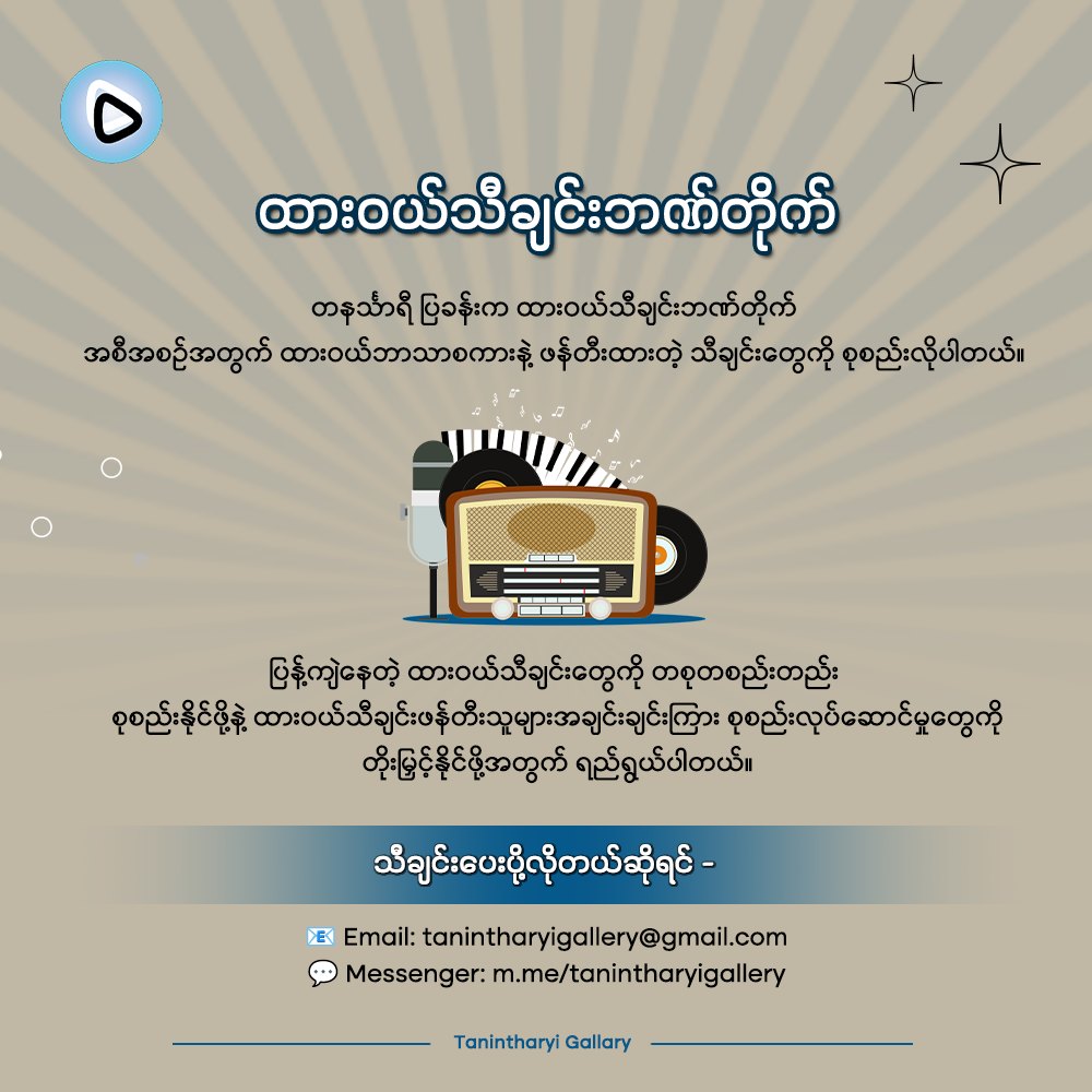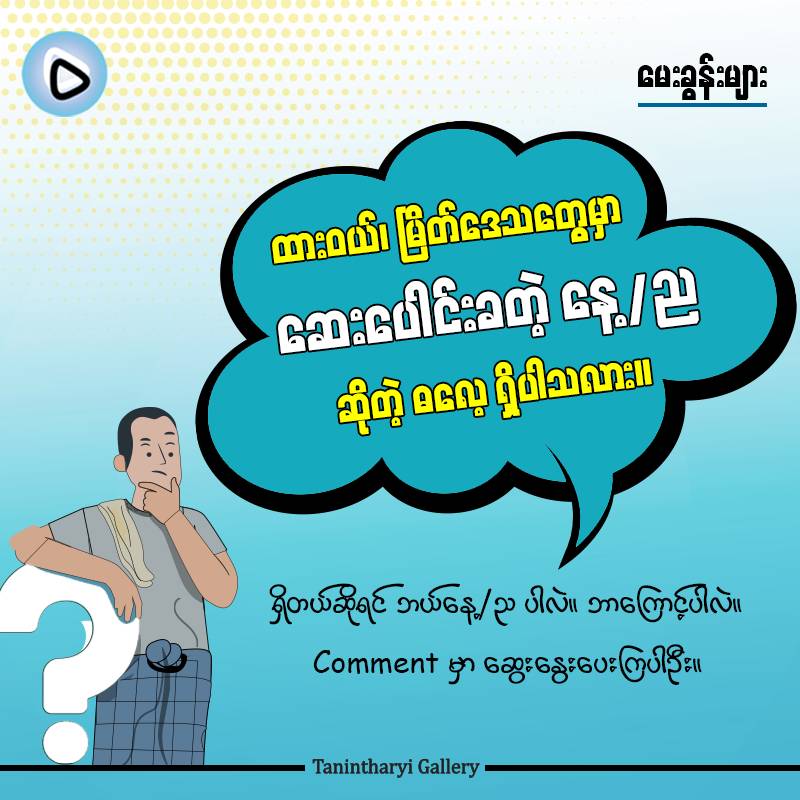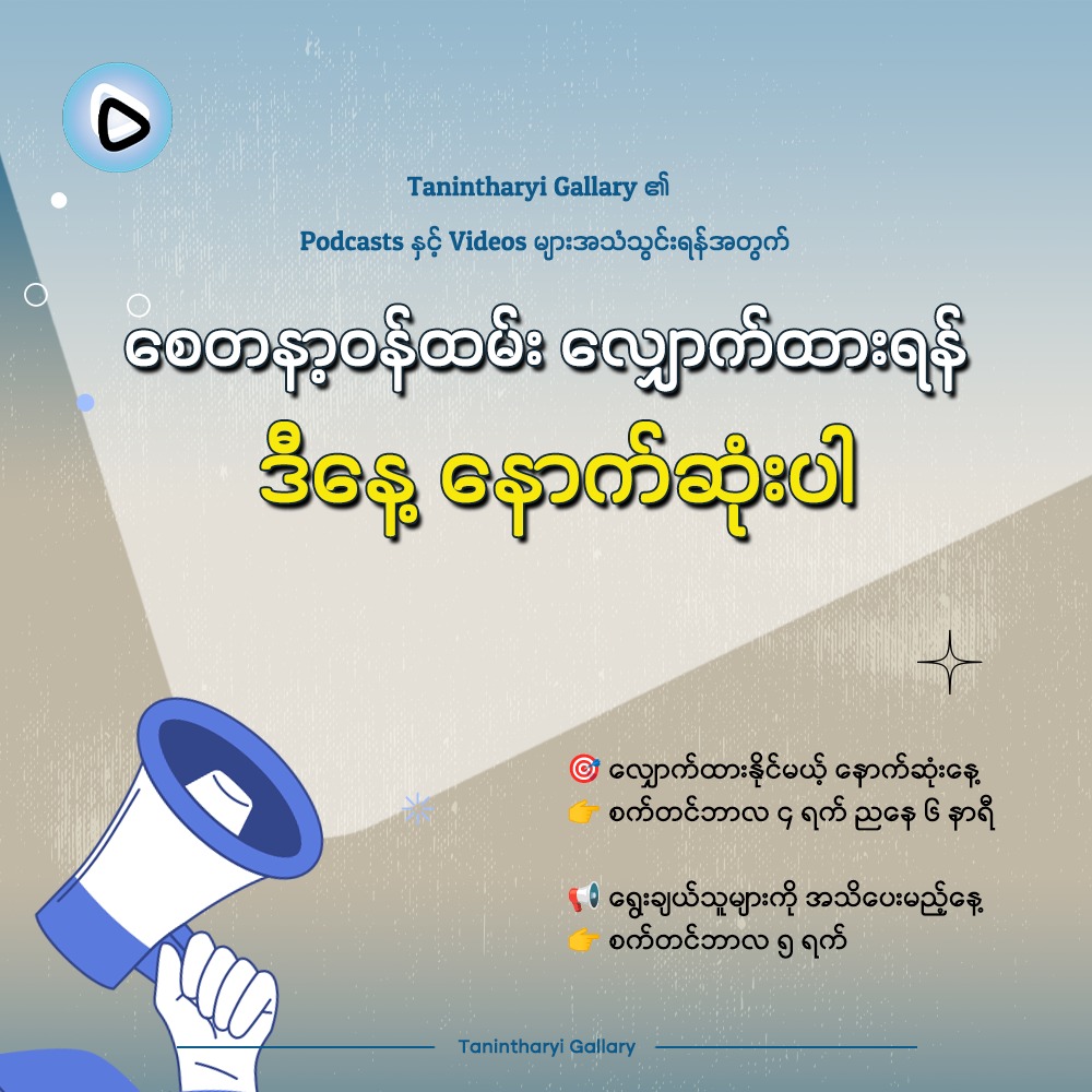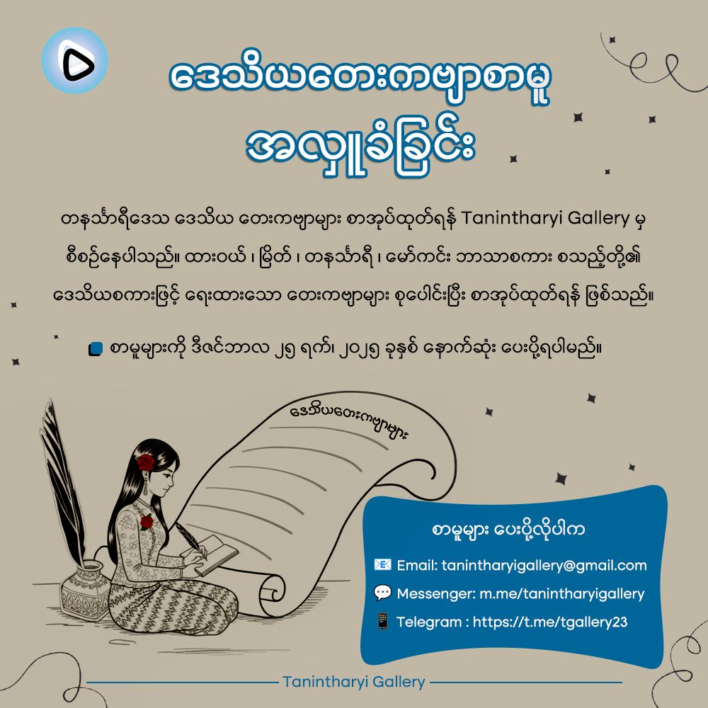 Notic Board December 12, 2025 ááąááá ááąá¸áááťáŹ á áŹáá° áĄáážá°ááśááźááşá¸ December 9, 2025 ááŹá¸áááşááŽááťááşá¸áááşáááŻááş áĄáážááşá ááş (á) December 3, 2025 ááąááá ááąá¸áááťáŹ á áŹáá° áĄáážá°ááśááźááşá¸ November 13, 2025 ááŹá¸áááşááŽááťááşá¸áááşáááŻááş áĄá áŽáĄá ááşáááą áááááŻáśá¸ ááŽááťááşá¸ November 9, 2025 áĄáá˝ááşá¸ááźáą November 4, 2025 ááŹá¸áááşá ááźáááşááąááá˝áąáážáŹ ááąá¸ááąáŤááşá¸ááá˛áˇ ááąáˇ/á áááŻáá˛áˇ áááąáˇ áážáááŤáááŹá¸á November 3, 2025 áĄáá˝ááşá¸ááźáą October 21, 2025 Tanintharyi Gallery áá˛áˇ Youtube á áŹááťááşáážáŹáá˛áˇ ááááşáááşááąá¸ááŤáá áąá September 9, 2025 ááŹá¸áááşááŽááťááşá¸áááşáááŻááş September 4, 2025 á áąáááŹáˇáááşáááşá¸ ááťážáąáŹááşááŹá¸áááş ááŽááąáˇ ááąáŹááşááŻáśá¸á፠August 30, 2025 á áąáááŹáááşáááşá¸ ááąáŤáşáá°ááźááşá¸ August 19, 2025 ááźáááşá áá áá áşá ááąáŹááźáŹááąáˇáᏠá áŹáááşá¸áááŻá¸ ááŽááŽááᯠááźááşáˇááŤáááşá 1 2 3
